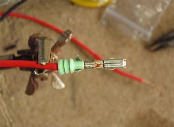 En la parte posterior del conectador del metal son dos pestañas más que necesitan ser doblado más para asegurar el más humedad barier.
