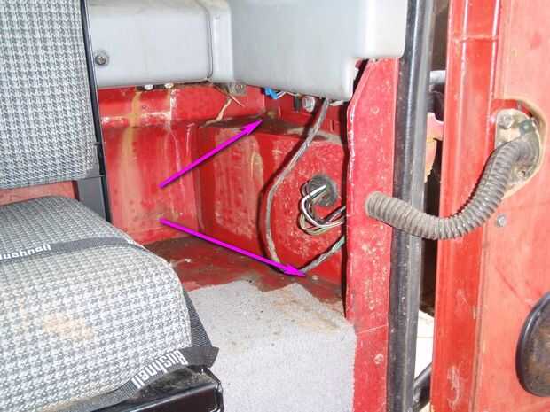 Es necesario quitar la tapa aflojando los pernos y tornillos como se indica por las flechas de color púrpura. Revise los colores de cableado para las luces traseras antes de atacar a cualquier otra cosa.