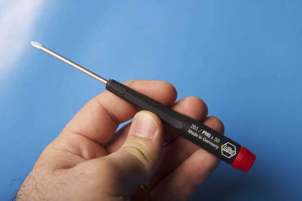Elegir el destornillador adecuado es esencial para este trabajo. Tiene que caber cómodamente dentro de las ranuras del tornillo, no tienen mucho margen de maniobra y a sentirse bien en allí. Destornilladores Phillips no todos son iguales, algunos fabricantes hacen ligeramente diferente en forma, así que elegir un tamaño correspondiente puede no ser suficiente.