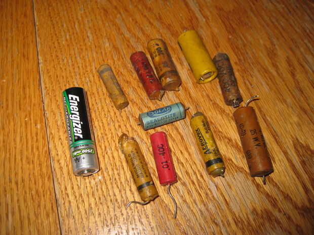 como puede ver en la imagen que fue paralelo a un par de casquillos de cerámica para obtener el valor que necesitaba. Hay también los condensadores de cerámica algunos originales aquí, y im dijo que no necesitan cambiar si están rotos o quemados. ¿por qué no puso cerámica por todas partes en vez de los cera y papel de los? no dude en comentar este i me gustaria saber!