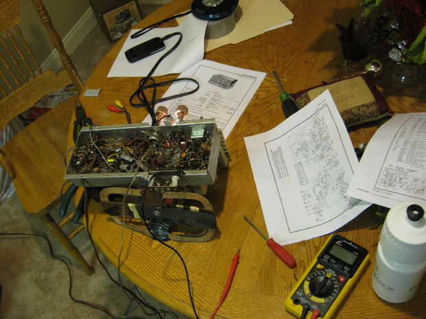 Utilicé el esquema para encontrar la FM post en la parte inferior del tubo de entrada y pone un cable en eso y otro alambre en el poste de entrada de audio. luego luego lo prendia y ponerlo en un multi medidor para asegurarse de no estaba enganchado al poder, y demostró a 0 voltios. siguiente paso, corrió los cables a mi reproductor de cd y conectado, encendido y como él pretendía ser, perfecto sonido claro desde los altavoces de la radio. ¡ Yay! recurrí a AM con el CD todavía, y era sólo AM así que mi nueva entrada no estaba en el circuito de AM. dio vuelta de nuevo a FM y él estaba allí y la radio había controlada por el volumen como quería así que todo funciona como yo quería.