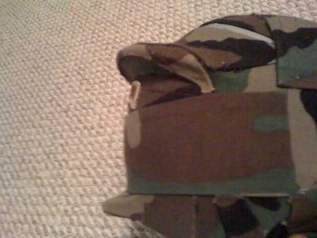 Nota: en orden para los lados y las esquinas de cada pieza de tela no a carga, lo que hice fue doblar y pegar. Si utiliza las aletas del bolsillo de la unitform (cada uniforme militar Rinde 4 aletas del bolsillo y puños de manga 2 que ahorrará la molestia de tener que hacer esto)