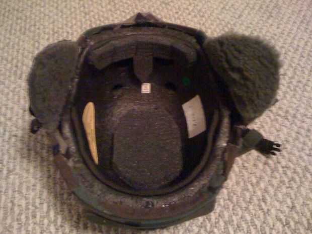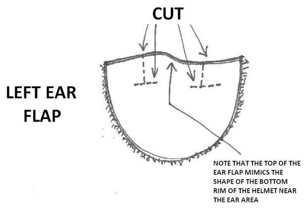4. pegar el borde superior de las aletas del oído completa en el labio inferior del casco.