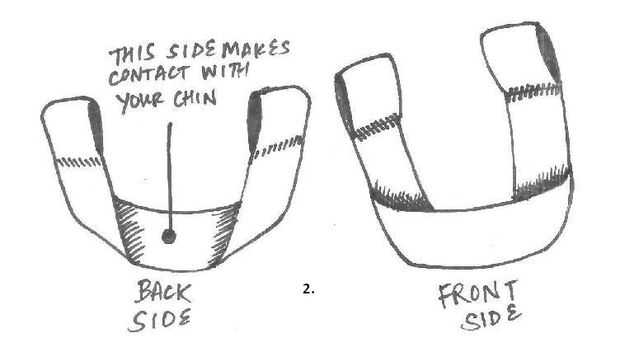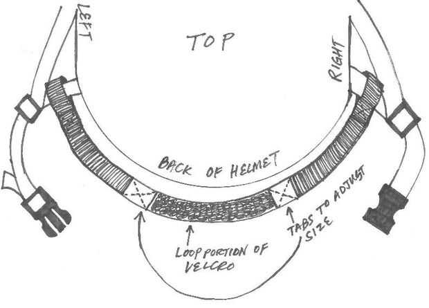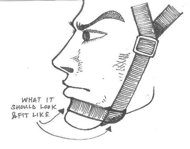 -incluir los extremos de la banda de tensión a la parte parte posterior-parte superior de la correa de barbilla como se muestra en el diagrama