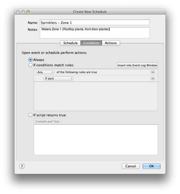 • Mover a la pestaña de condición y asegúrese de que siempre es seleccionado (a menos que quieras un sensor u otro factor para informar el horario)