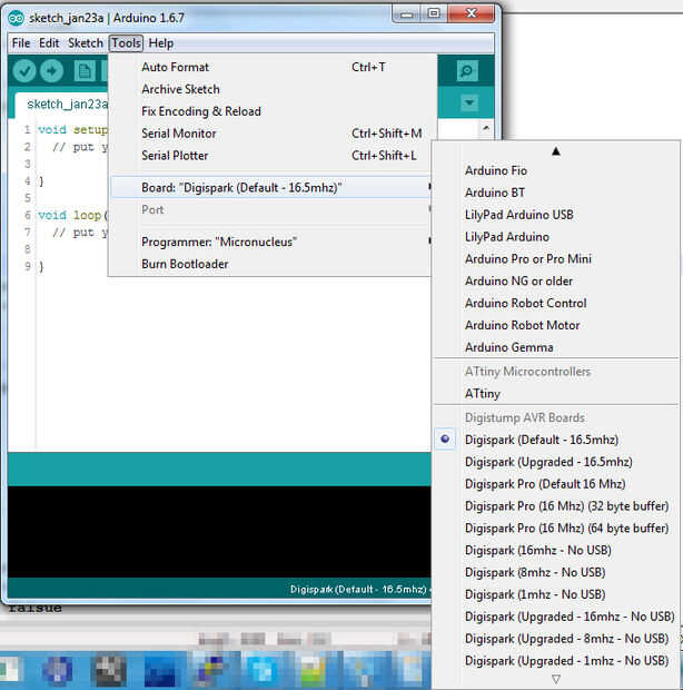 De ahora en adelante, usaremos estas entradas al cargar a su DigiSpark actualizado.