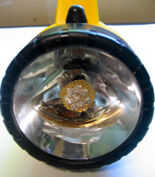 Fui a un arreglo paralelo de 8 LEDs con una resistencia de 50 ohmios en serie. Definitivamente superó el bulbo original de brillo.