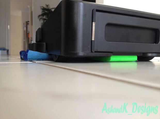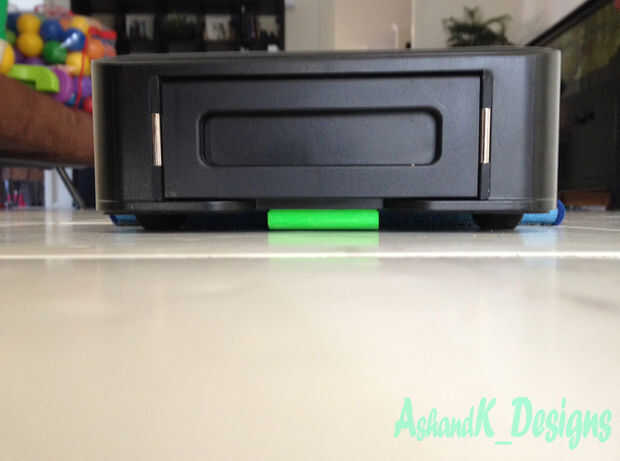 Ahora mi primer intento me llevó a rediseñar la tapa, azulejos de piso desigual significan el 1-2 mm de espacio no era suficiente y se atranca en lugares. El piso mojado y espacio reducido significaría que girar las ruedas en el lugar.