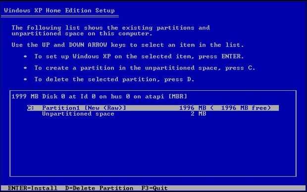 Usted tendrá que eliminar la partición de Windows Vista para instalar windows XP. Si ves otra partición tamaño buena (par de Curro) cerca de la partición primaria más probable es que es la partición de recuperación. Usted puede elegir si desea mantener este. Ya tengo mi CD de Vista, era buena para ir y sacarlo junto con la partición de Vista. Elija D = Delete en la partición de Vista antigua. Presione C para crear una nueva partición. Tienes que formatearlo con NTFS y la opción rápida para ahorrar tiempo. Una vez finalizado el formato, se iniciará la instalación XP de windows normal. Entrada a la configuración predeterminada y está bueno para ir.