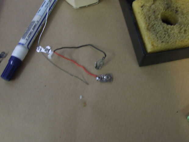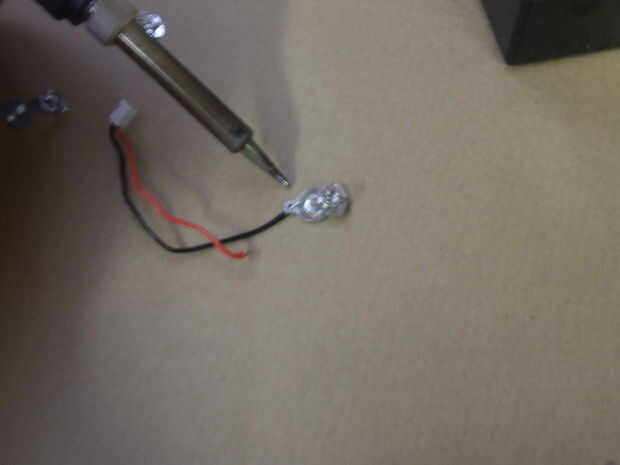 Dos de estas brocas metálicas se sueldan a la negativa (cable negro) y positivo (cable rojo) se conduce de la conexión eléctrica.