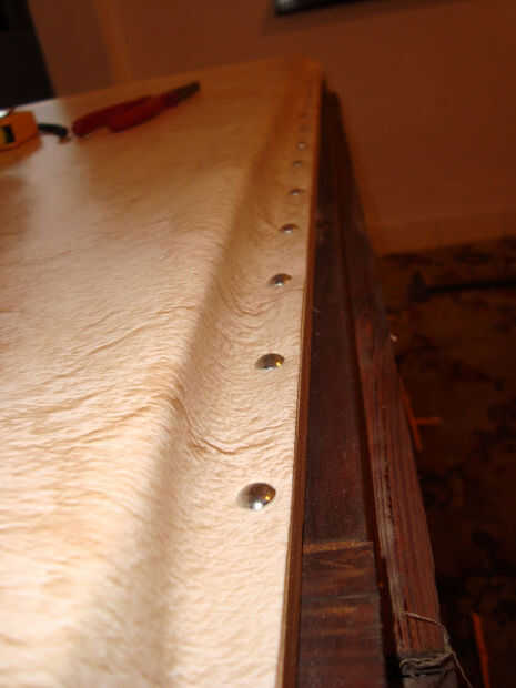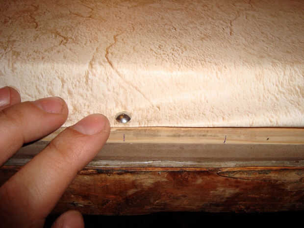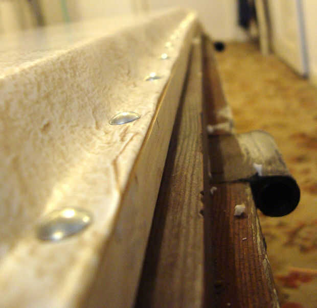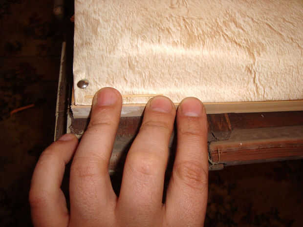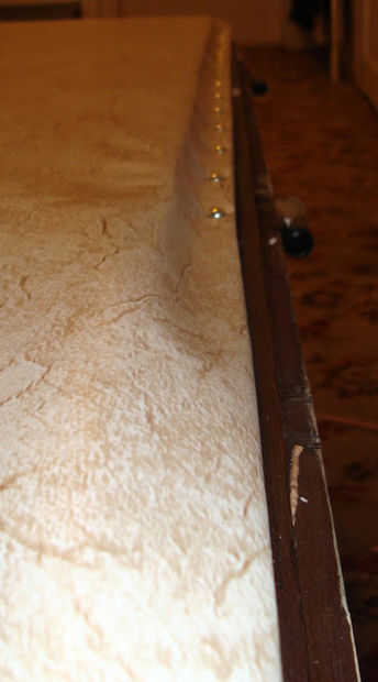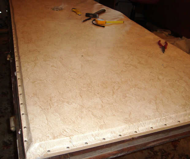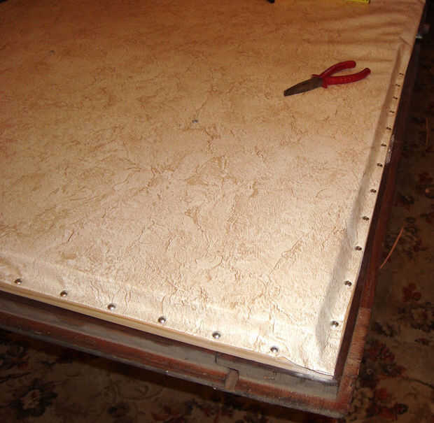 Mantel traducir el ancho del perfil de madera. Comience en la esquina, seguir los lados. El material debe ser uniformemente tensado.