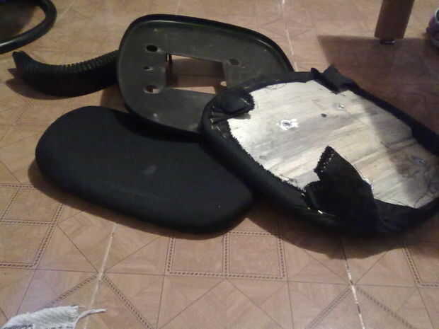 tenía una silla de oficina inservible, que se hunde y quería solucionarlo sin gastar dinero, así que sólo utilizar lo que ya tenía en mi piso (no casa/taller, para que nadie tenga qué hacer).Para hacer el asiento completamente hasta en todo tiempo ne
