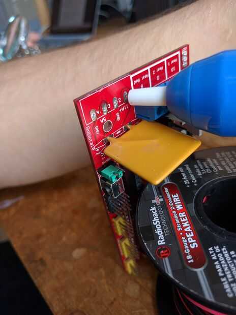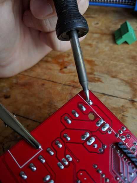 Con su soldering iron en un lado del tablero y la bomba de la soldadura en el otro, calentar el resto de soldadura hasta que quede completamente líquido. Presionar la bomba de la soldadura al ras contra la placa, se usa para aspirar la soldadura. Lo que debe permanecer es un agujero perfectamente limpio, lo que le permite poner en cables nuevos.