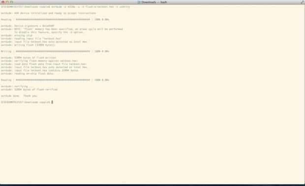 CD es cambie el directorio por lo que sólo cambia que carpeta la terminal está mirando, así que si descargaste twiboot.hex a tu carpeta de descargas y su username es cappie el primer comando sería algo como esto en Mac