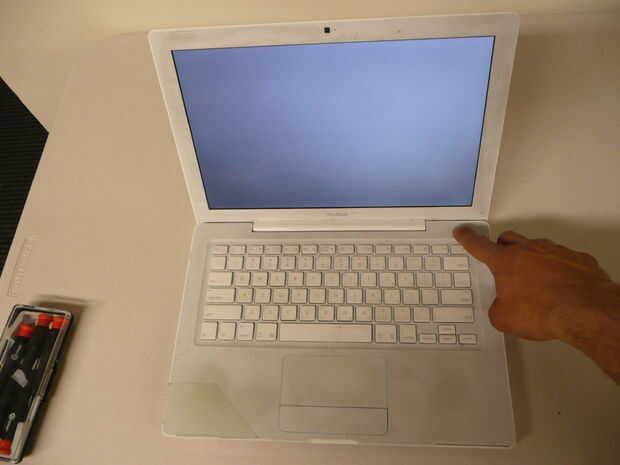- Voltear la laptop, ábralo y pulse el botón ON.