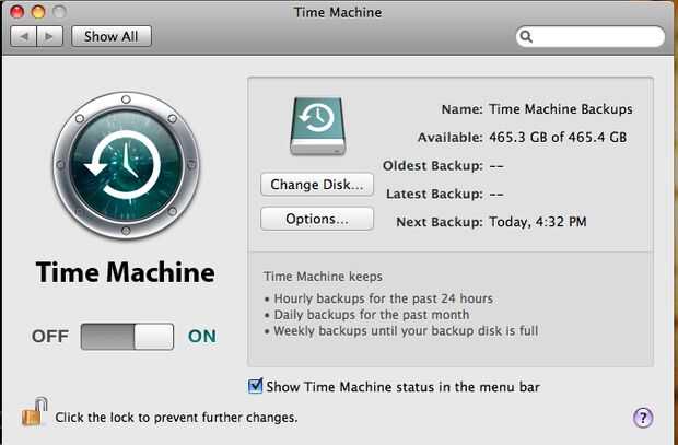 Una de las cosas más bonito sobre el sistema operativo que acaba de instalar es una nueva aplicación llamada Time Machine. Continuamente toma instantáneas de su disco y los guarda para que en caso de que alguna vez tienes un problema y perder algunos datos... usted puede simplemente mirar hacia atrás en el tiempo. Para ello se necesita un disco duro externo.