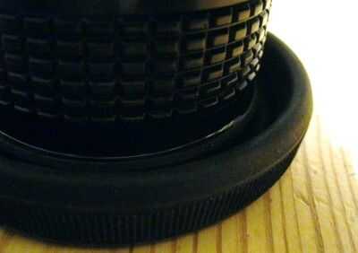 2. la manera más difícil (pero todavía bastante fácil): tenía unos 46mm goma capuchas de lentes que no encajaban en ninguna de mis cámaras, usé esto como un parasol y una manera de colocar los filtros 46mm delante de la lente. La lente es tan profundamente empotrada en la cubierta del lente, ello seguramente no es necesario ningún shading de la lente extra, pero puesto que el objetivo es sin recubrimiento y propensa a flare, pensé que no podían doler extras sombreado.