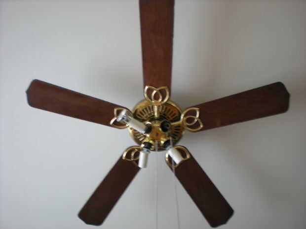ventiladores baratos con falso brillante grano de madera y piezas de "bronce" son bastante feos y bastante frecuente. Ya que no pude encontrar un gran reemplazo buscando que no le costó un gazillion dólares, ya que mis fans todavía funcionaba bien, he decidido a cambiar su aspecto. Este proyecto es fácil de hacer y no requiere ningún trabajo eléctrico (a menos que quieres hacerlo). Plan de 2-3 horas para hacer frente a los primeros 6 pasos y otros 30 minutos para volver a montar su ventilador y enciéndalo.