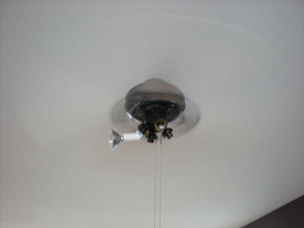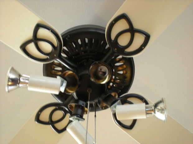 Elegí a los globos de vidrio horribles que vienen con estos viejos ventiladores cutres e inversión en estos adaptadores de luz de Satco de la zanja. Funcionan como luces de la pista ajustables. Recogí estas en línea por alrededor de $12 cada uno, así que $72 para suficiente para los dos ventiladores. (¡ Apuesto a que podría hacer algo impresionante y super barato con pequeña iluminación Ikea!) Y el halógeno de seis 50w estrecho proyectores conjunto me de nuevo alrededor de $30. Pero incluso con estos costos accesorios, tengo dos gran mirada, grandes ventiladores del trabajo para bien menos de la mitad del costo del ventilador de un reemplazo.