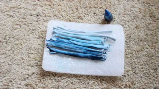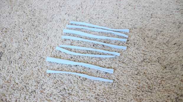 Tome la parte inferior de la camisa que originalmente nos habíamos recortado y empezar a cortar tiras de él. Estirar cada tira para conseguir esa textura agradable y elegí ombre mina con color de alimento para la diversión pero su hasta usted!