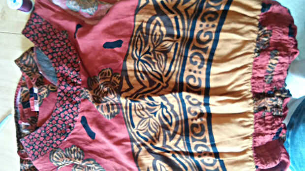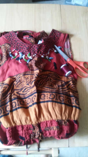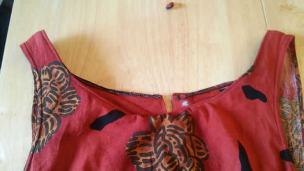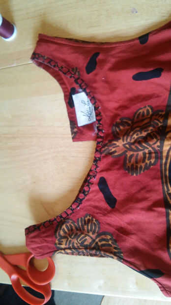 Después de que los granos se fueron decidí recortar el escote más. El vestido tenía un extra 2" de tela que no quería así que empecé por cortar lo que no me gusta.