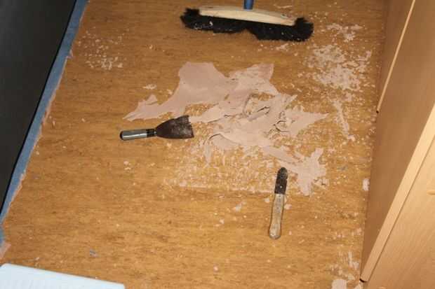 Actualizar una sala con auto-adhesivo tablones de piso de vinilo con la ayuda de gato hidráulico de coche (4 / 13 paso)