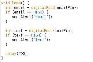 Un valor alto hace que la función sendAlert ser llamado con la cadena del tipo de alerta que desea. Haz informará sobre la serie que tecla y lo alertará solicita.