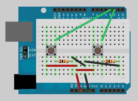 El diagrama de Fritzing muestra un protoboard pequeño sentado en un Arduino Uno R3. En realidad, la placa debe residir en un escudo de proto en un escudo de Ethernet en el Arduino, pero siempre parece que olvidan esa parte.