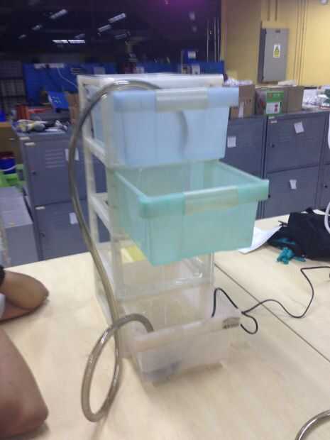 Es noviembre y las temperaturas están cayendo por debajo de cero (centígrados) ya, necesito mover el pescado de mi sistema de acuaponia de balcón (como aquí) en el interior.En lugar de ponerlos en un acuario común con un filtro estándar, decidí const