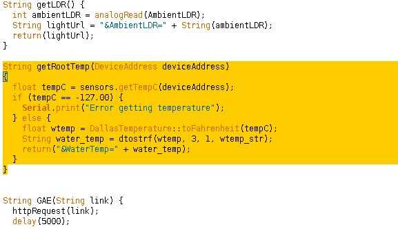 Figure10. Por último, añadir la función para obtener una lectura del DS18B20 temperatura y crear una cadena para la solicitud web.