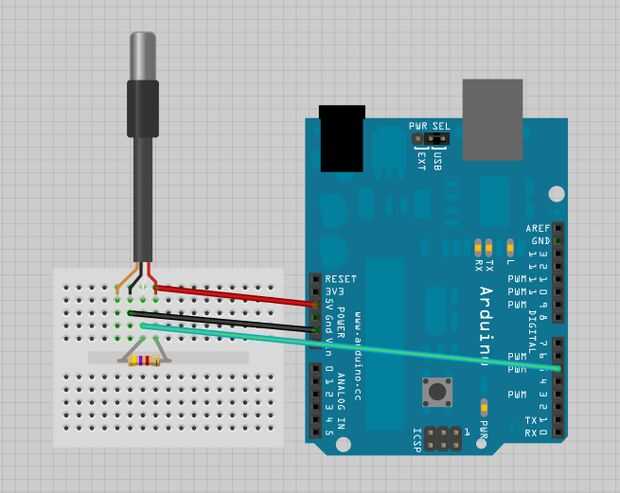 Figura 2-4. El diagrama de la placa para el DS18B20 sin el resto de la EnvDAQ.