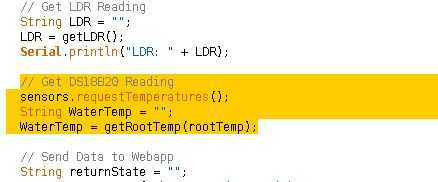 Figura 8. En el loop(), realizar una solicitud para obtener la temperatura de la raíz y asignar a la cadena, WaterTemp.