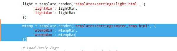 Figura 6. Crear una plantilla de temperatura de agua: /settings/water_temp.html. Otra vez, esto es fácil de hacer copiando y pegando el código original detemperature.html de /settings/y el «w» en lugares.