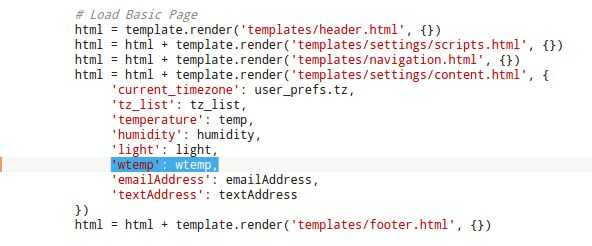 Figura 4. La plantilla de temperatura de agua se carga en la plantilla de /templates/settings/content.html - la plantilla de configuración principal. Editar el código de representación de la plantilla en la plantilla de temperatura de agua.