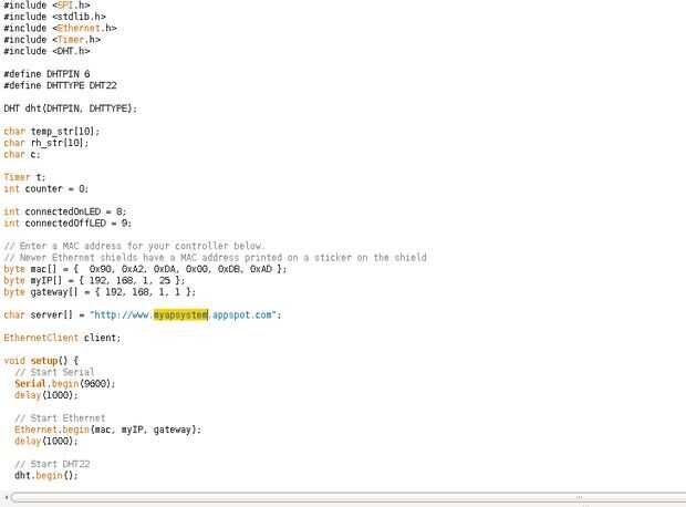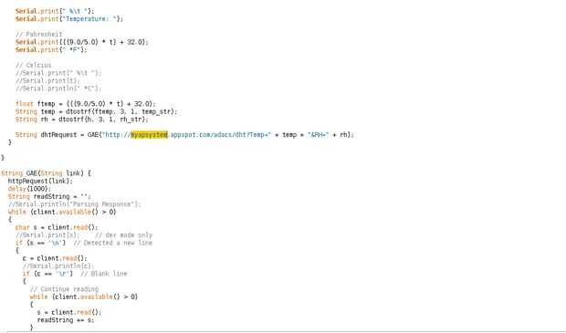 El Arduino de código debe apuntar a su identificador de aplicación, así que actualizar el código en los tres lugares destacados en las fotos. Tome nota, sólo cambia la parte resaltada de la url.