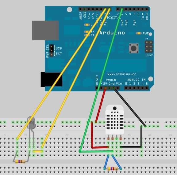 Los pernos en el diagrama son específicos para el código de Arduino. Si cambia los pernos, no olvide cambiar el código en la siguiente sección.