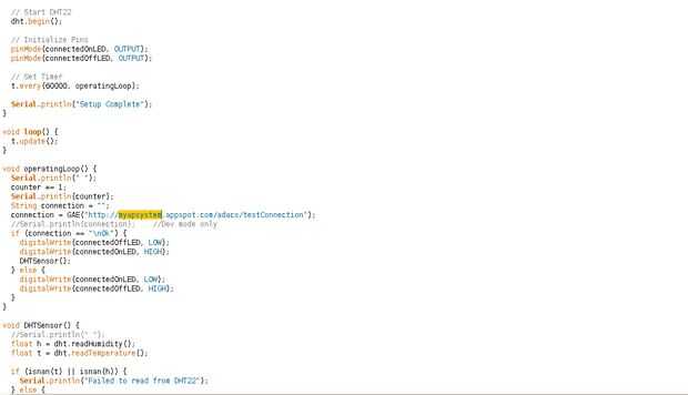 Cada sesenta segundos, el Arduino pondrá a prueba su conexión con la aplicación. Si se conecta el LED es verde y el Arduino va a leer desde el DHT22. Se convierte la temperatura en grados Fahrenheit y la temperatura y la humedad relativa se envían en una petición GET a GAE.