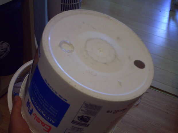 en este paso simplemente marca donde su sifón debe ser en el balde y perfore el agujero. Utilicé una 7/8 broca pero que depende del tamaño de la botella. también nota que me dijo marca luego de perforación como se muestra desde el parche en la parte inferior de la canastilla de este paso es importante jajaja.