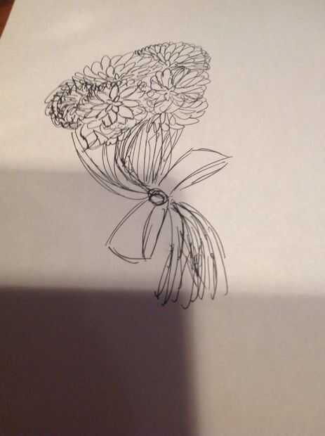 Dibujar los tallos como las líneas largas y curvas. Hacerlas cumplir en el centro y atar con un lazo. Sugiero usar una foto de referencia y pintura flor favorita de su mamá, porque hará el regalo más tocar.