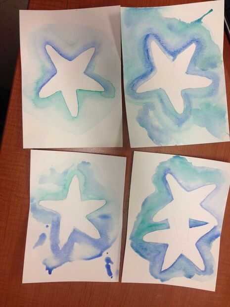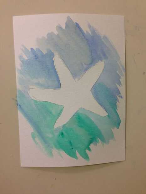 La plataforma para el fondo será azul y verde. Diluir los colores con agua y utilizar una técnica de lavado para llenar en su fondo. Muy importante: que la pintura seque completamente antes de pasar al siguiente paso.