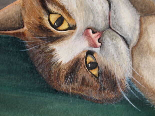 Por último, asegúrese de añadir sombras donde ves en la foto. Por ejemplo, debajo del gato de cabeza en mi retrato, verá que el verde es más oscuro en ciertas áreas - y esto es para mostrar la sombra de su cabeza. Hace una gran diferencia y ayuda a hace tu retrato parezca real.