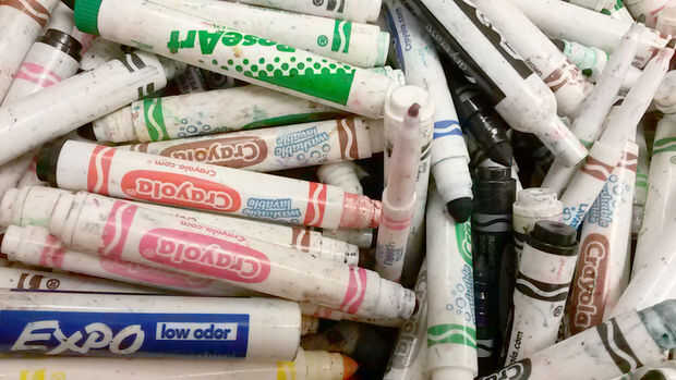 Ordenar sus viejo marcadores de color. Generalmente tienen mis alumnos para ello. Inexplicablemente, les encanta hacerlo. También tengo quitar cualquier tapas sobrantes. Los como material alternativo salvamos.