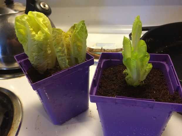 - Lechuga: Si tienes una cabeza de lechuga que estamos casi listos con, la base de la planta e interno diminutas hojas y la raíz y se convierten en una nueva planta de lechuga! Mina sobrevivió, pero nunca crecieron hojas lo suficientemente grande o suficientemente rápido como para proporcionar gran parte de la comida.