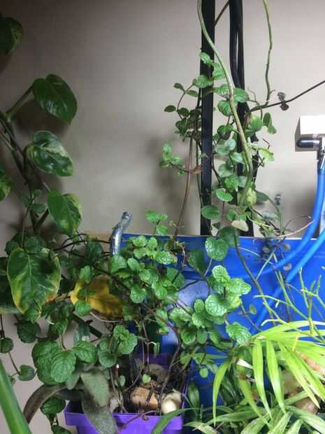- También tengo Menta crece ahora, que lo está haciendo bastante bien. Al principio cuando lo planté, arrugados hacia arriba y cayó una gran cantidad de hojas pero finalmente se volvió y comenzó a crecer frondosas vides por todo el lugar.