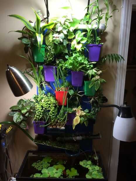 Este proyecto es bastante similar a una configuración de http://our.windowfarms.org . Parecen bastante enfocados en hidroponia acuaponia (que es una vergüenza) y en lugar del método de pared de goteo tienen agua por goteo a través de tubería directamente del envase de una planta a uno por debajo de ella. Generalmente utilizan botellas de plástico como sus recipientes de la planta y colgarlos en las ventanas para coger la luz del sol, que absolutamente lo haría si tuviera una ventana adecuada. Y mayoría de la gente parece usar el mismo transporte aéreo bombeo método como yo (pero para el registro, surgió la idea de forma independiente).