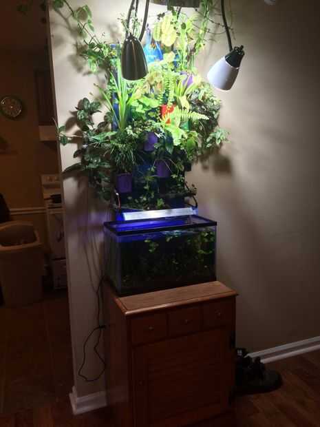 Estoy empezando a desear tenía una pared grande para más plantas, o utilizar una pecera más grande como una fuente de fertilizante más fuerte. Si tuviera que construir otra versión yo intentaría encontrar una manera de poner las plantas en una ventana soleada, con tal vez el tanque de pescados de la el lado o por debajo (luz del sol en un tanque de peces hace que las fluctuaciones de temperatura y algas). Por supuesto, no utilizar la estructura de la pared delante de una ventana.