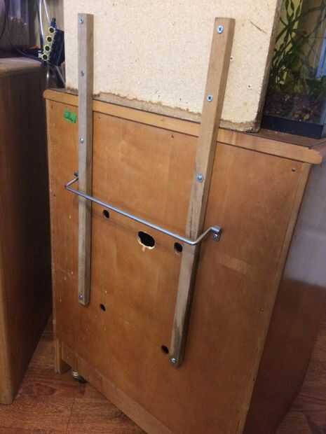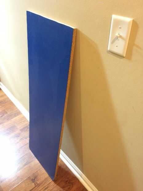 He encontrado un tablero MDF melamina azul grande por una tienda contenedor de basura. Era parte de una especie de vitrina o algo. Corté una pieza de 3'9 "altura (debo haber hecholo taller caben más plantas!) y estaba en la parte posterior del carro y apoyado con algunos restos de madera.