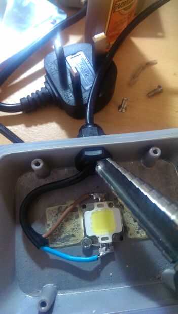 Luego alimentar el otro extremo de su cable de extensión a través de él. Soldar el cable a usted de soldado apagado el LED lo que positivo y negativo son la forma correcta alrededor de cinta los cables pelados y en plástico para que no se toquen.