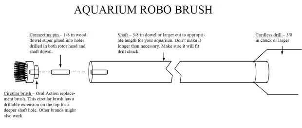 Friegue las algas y suciedad del acuario rocas con este tamaño reducido, pero muy eficiente dispositivo usando la cabeza rotatoria de un cepillo de dientes con pilas.