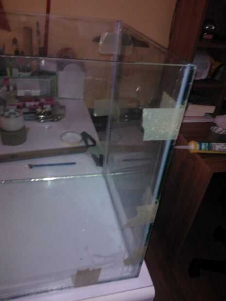 Luego poner más cinta en las esquinas hasta que se seque, los fabricantes de silicona dice que es suficiente con 24 horas pero preferí esperar el día, por si acaso. Asegúrese de que la silicona no es antihongos porque puede lastimar a los peces.